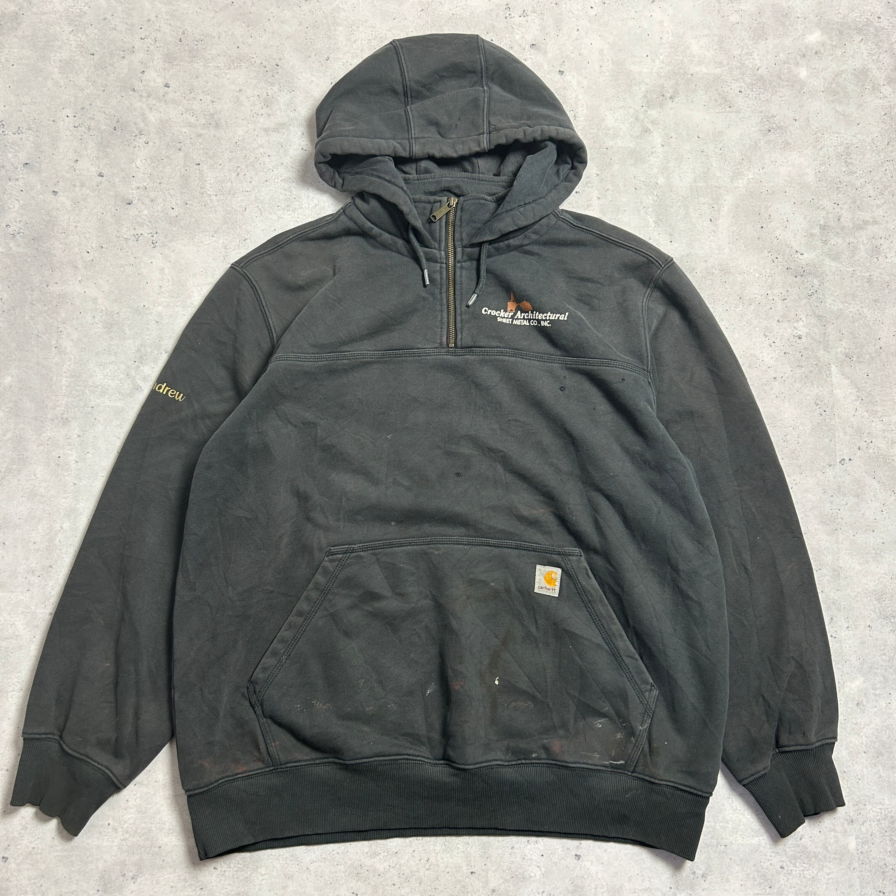 cahartt カーハート フェードブラック ハーフジップスウェットパーカー 鬼フェード ボロ RAIN DEFENDER