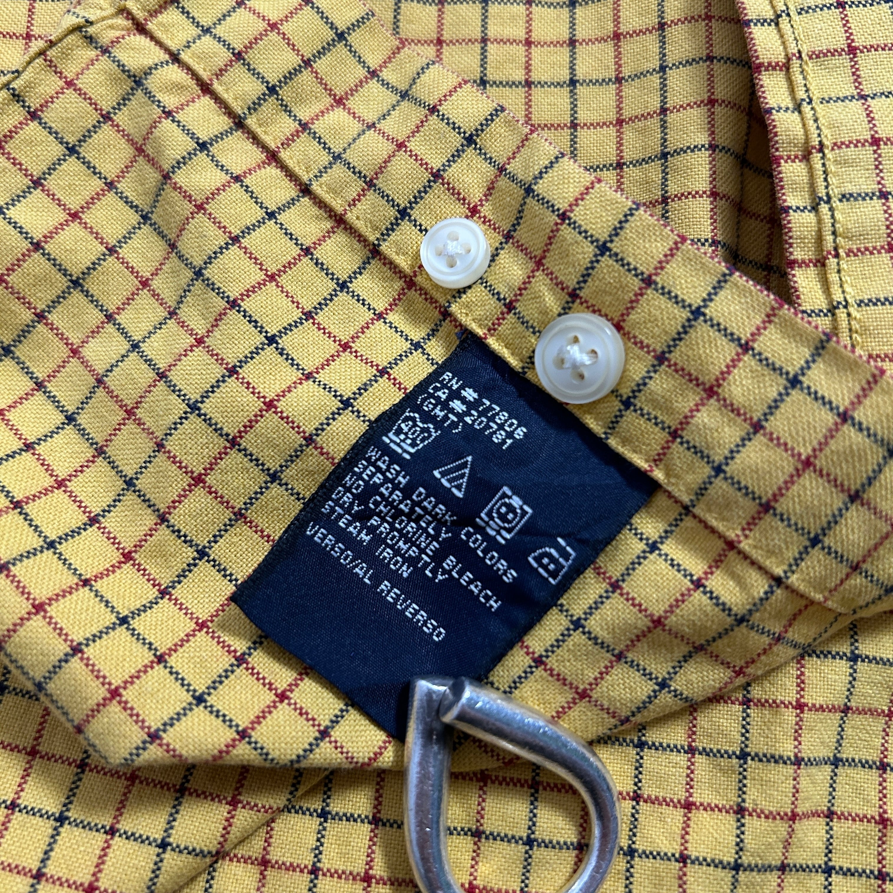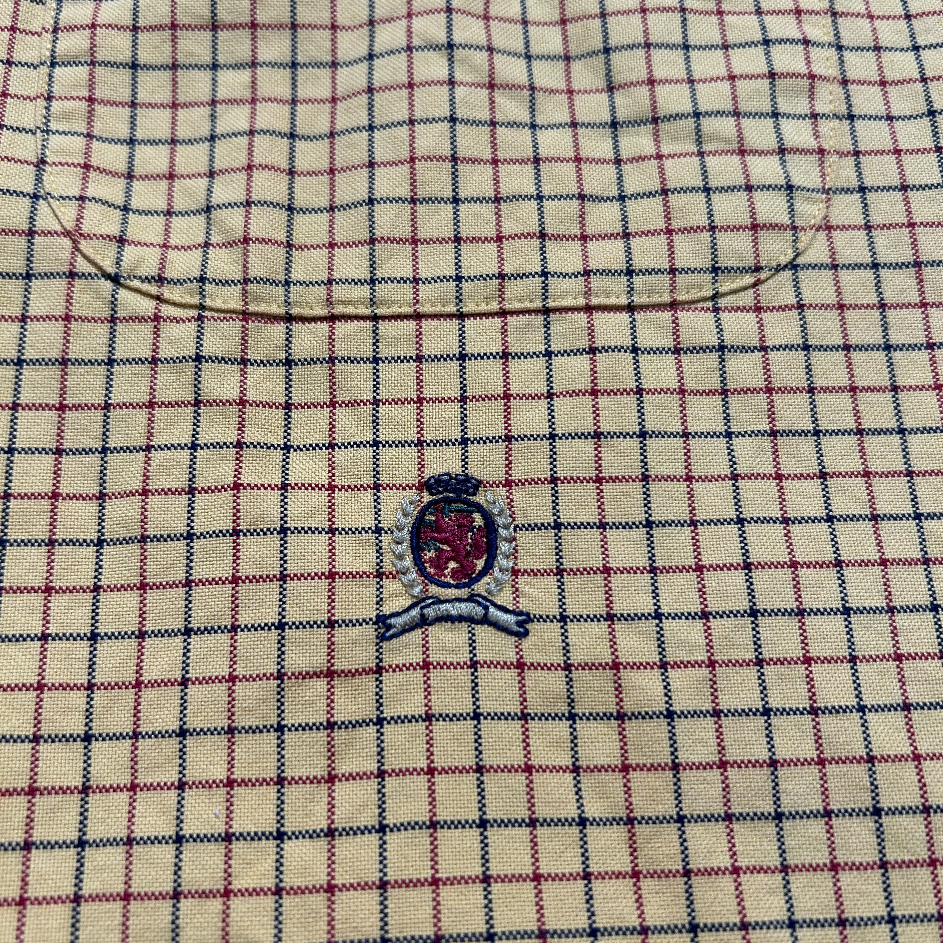 90s~00s TOMMY HILFIGER タッターソール 好配色 イエロー ボタンダウン チェックシャツ