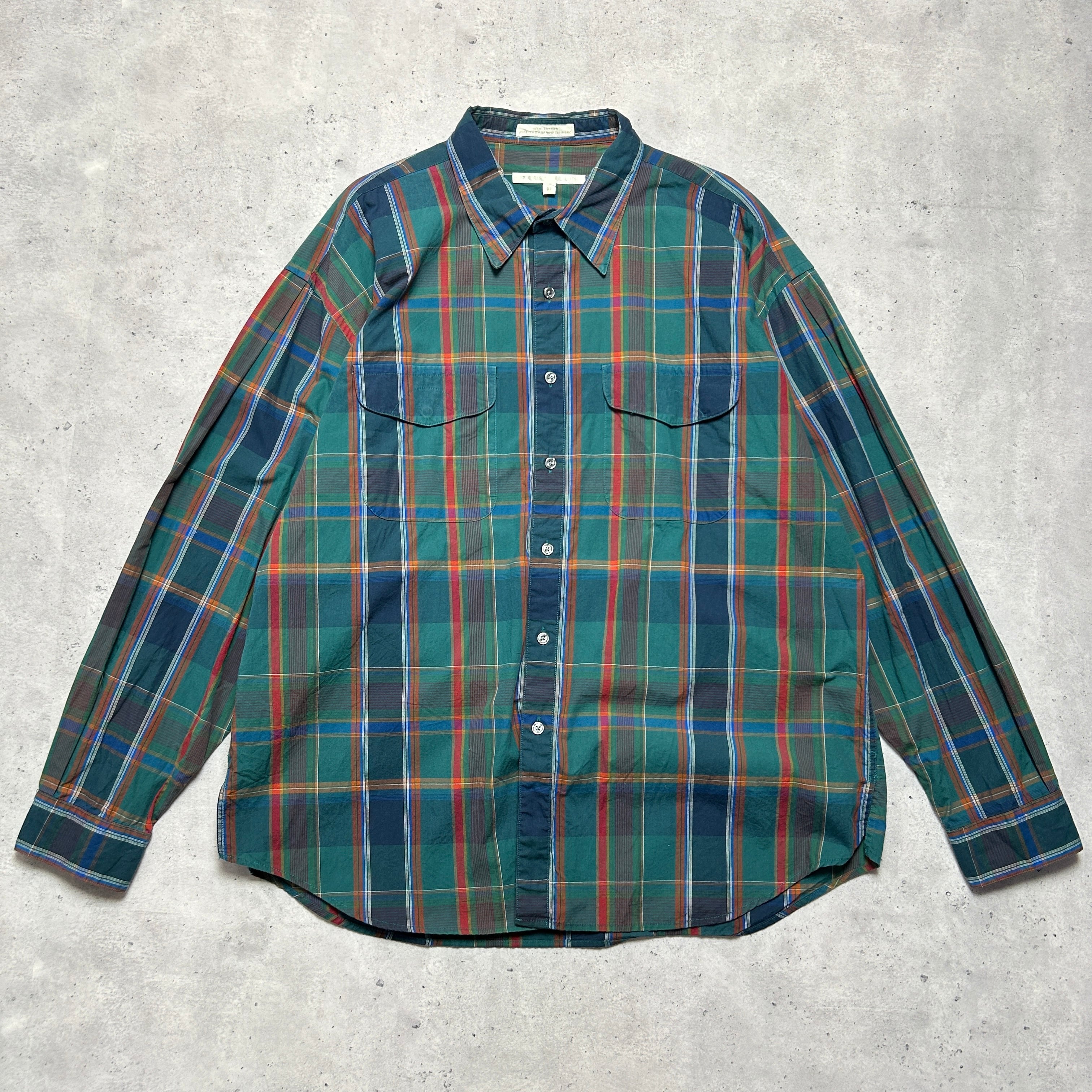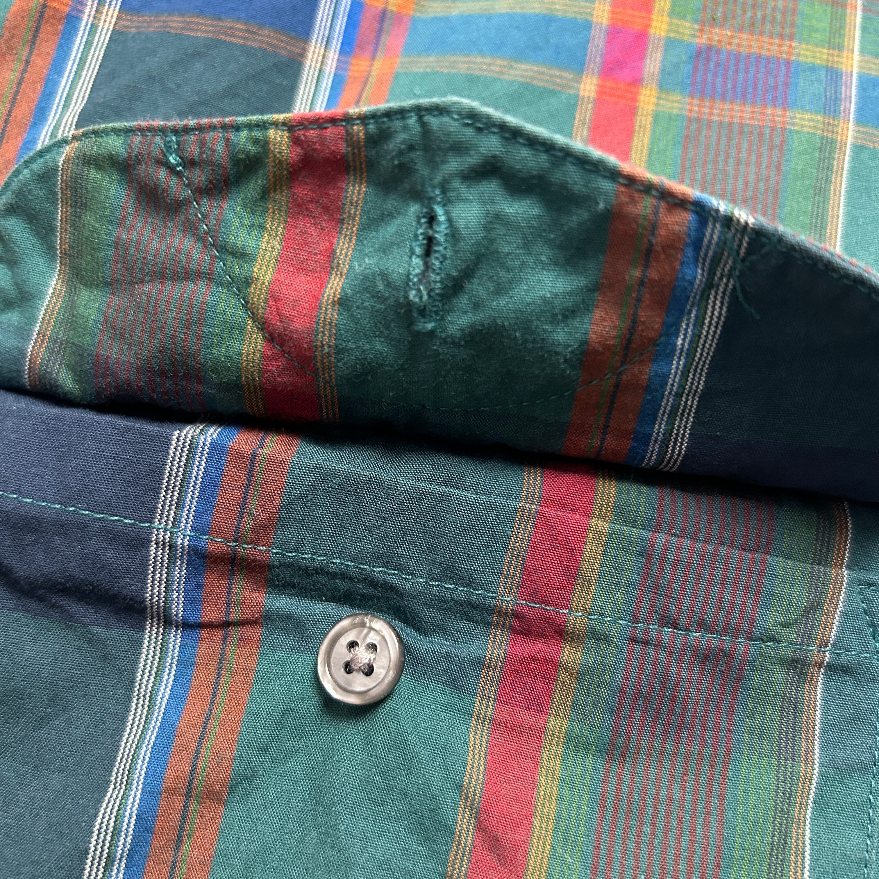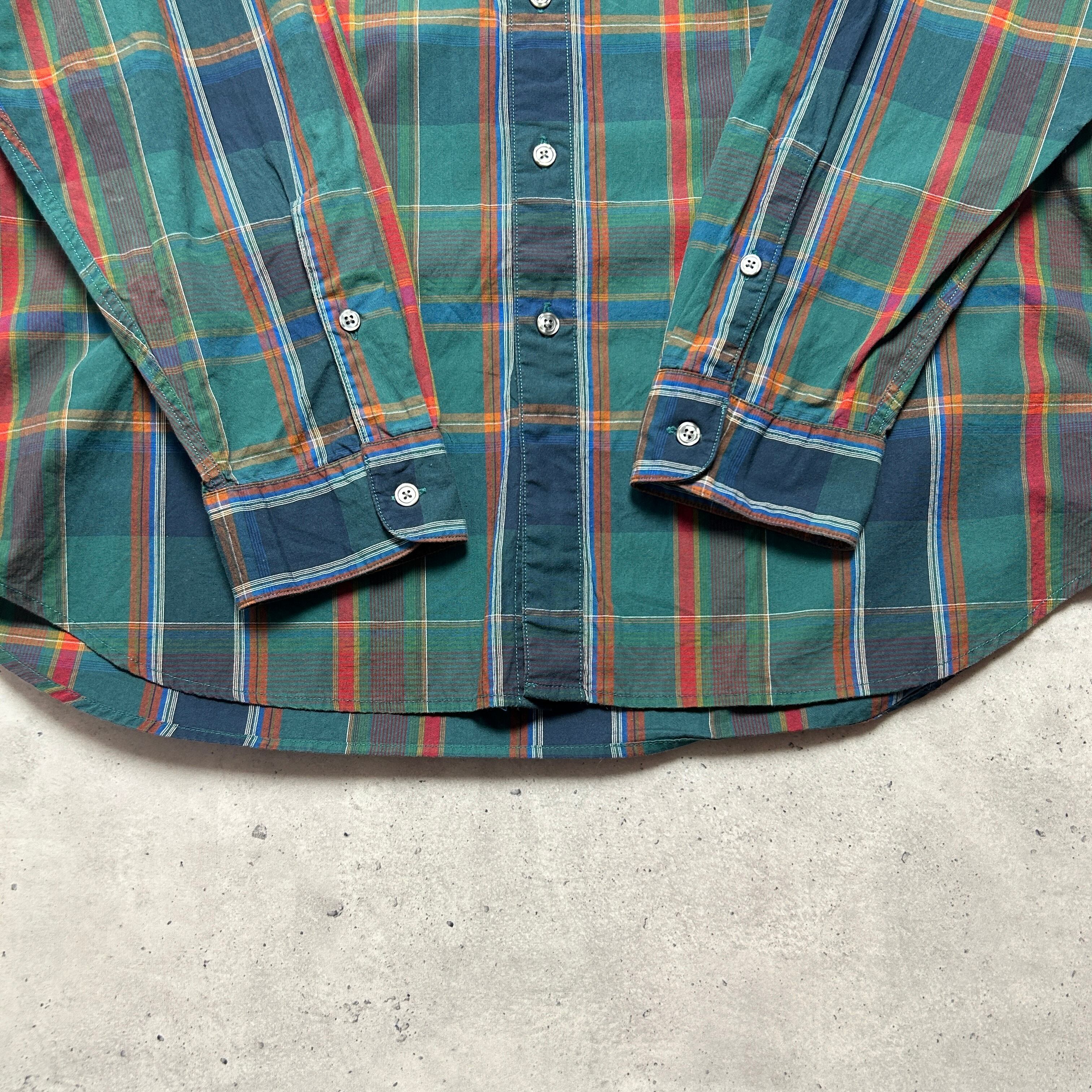 90s USA製 PERRY ELLIS ボタンダウン マドラスチェック ヴィンテージシャツ 好配色