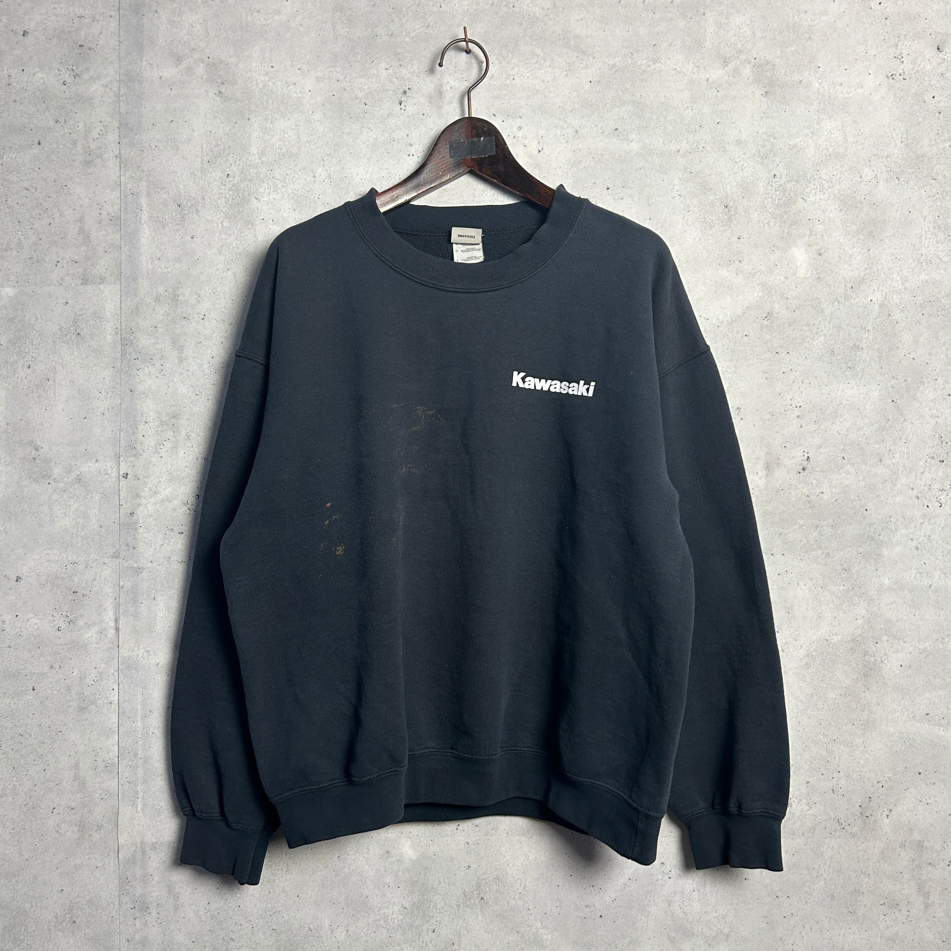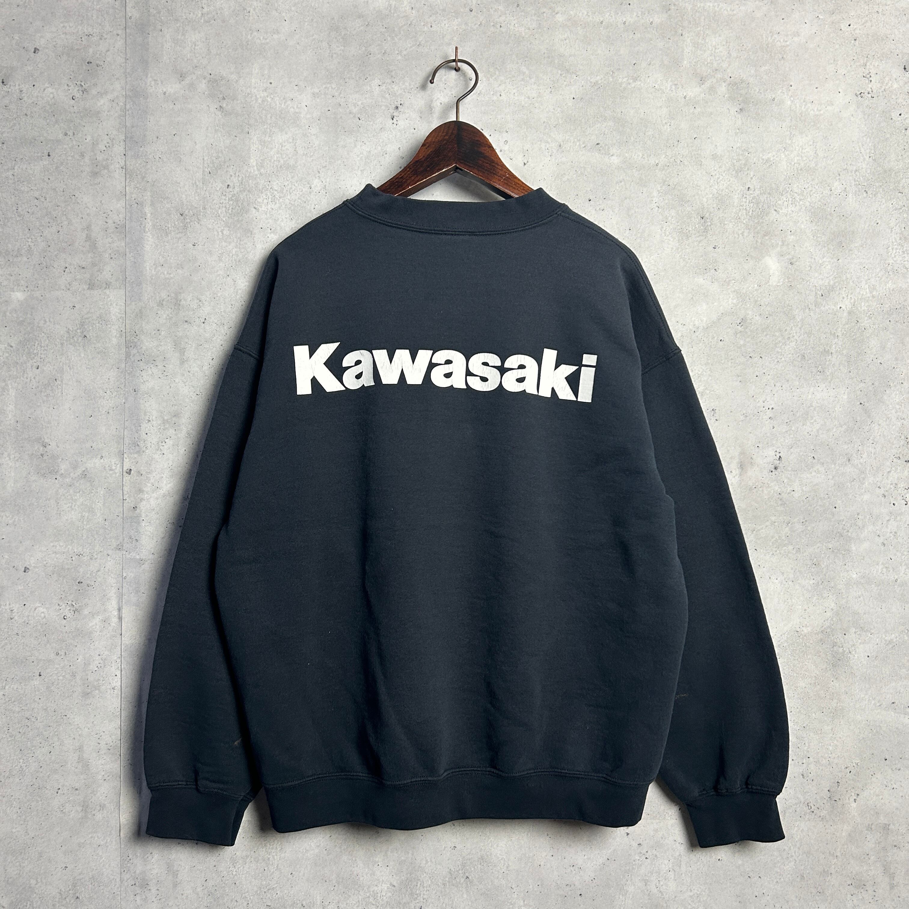 ブラックボディにカワサキのロゴがホワイトであしらわれたシンプルなデザインがかっこいいスウェットです。