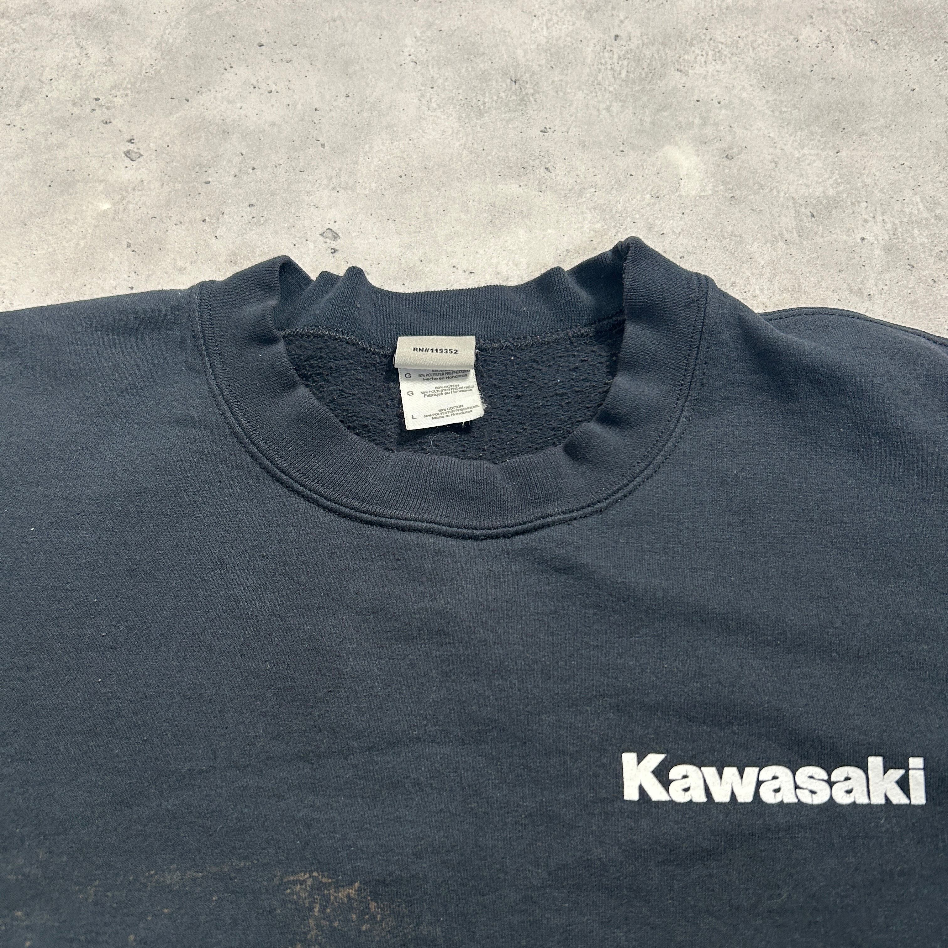 80s 90s カワサキ バイク モータースポーツ 企業ロゴ スウェット トレーナー 短丈 ボックスシルエット ブラック 雰囲気系 L