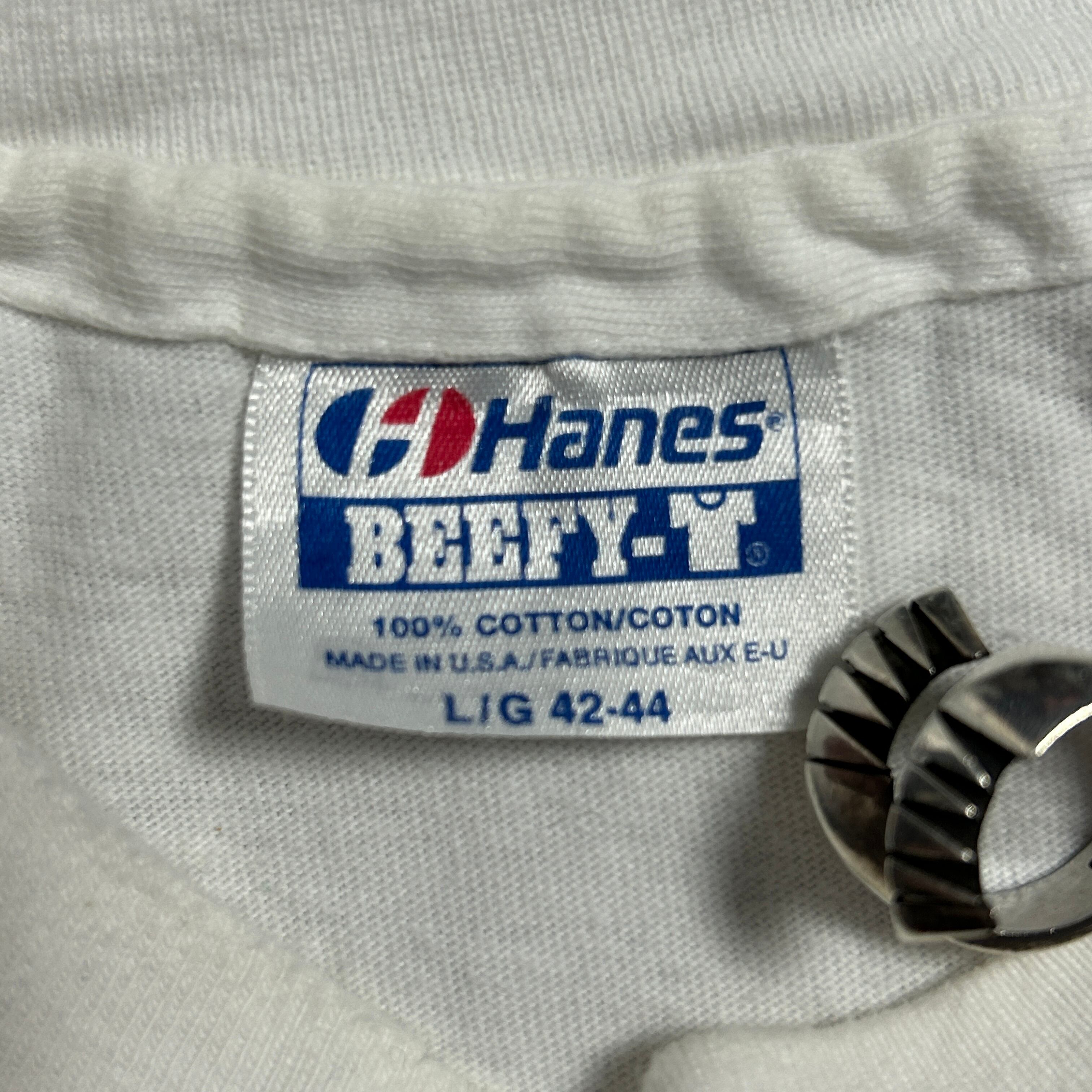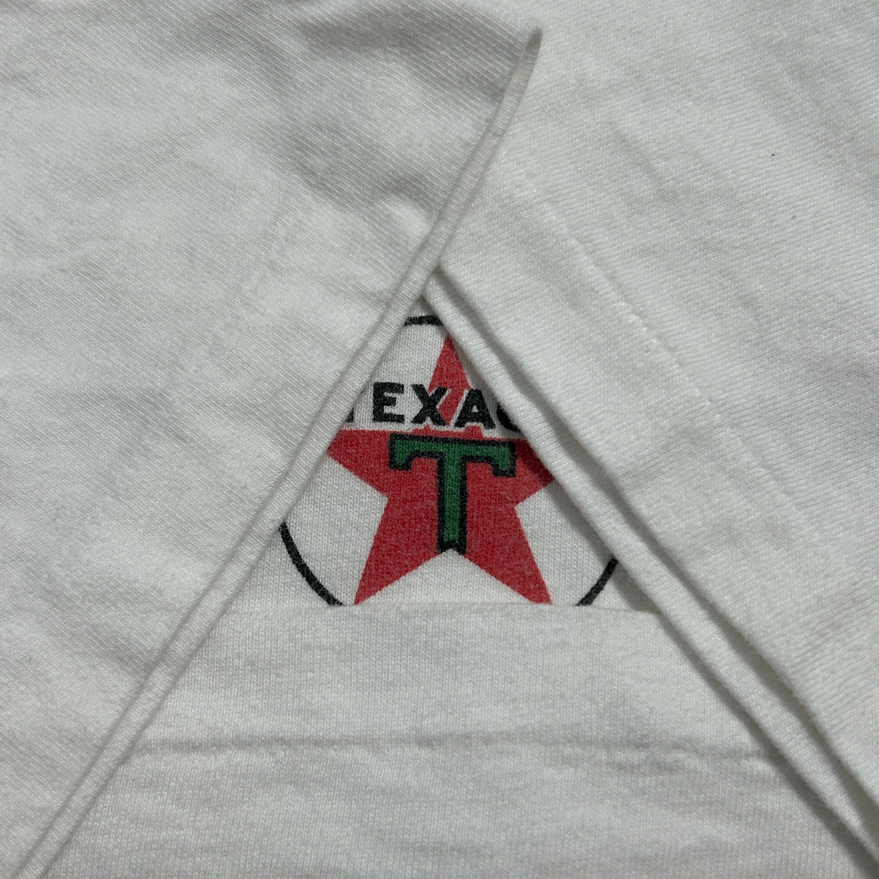 90s USA製 石油 企業 TEXACO アド物 ロゴエボリューション Hanes BEEFY-T 袖裾シングルステッチ M