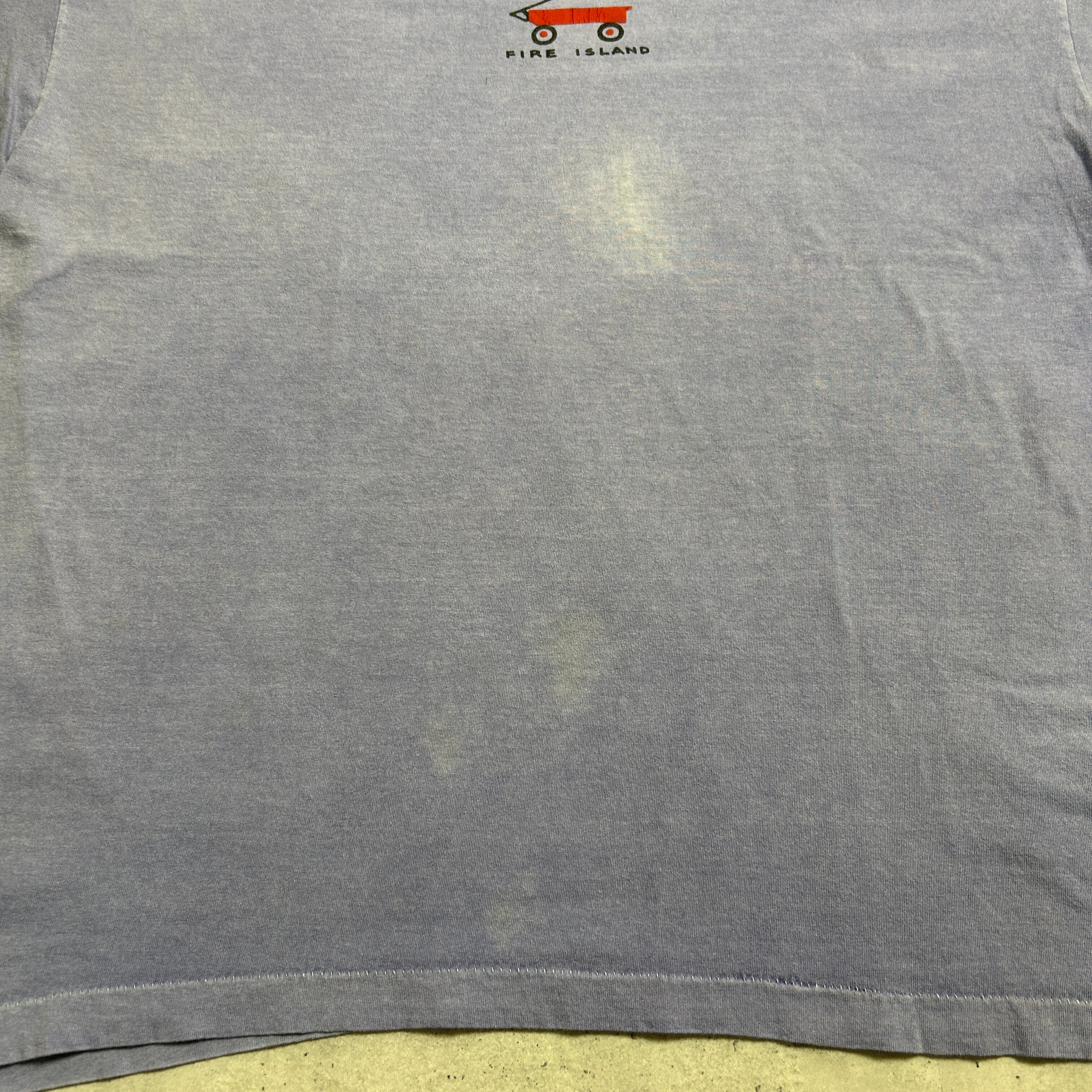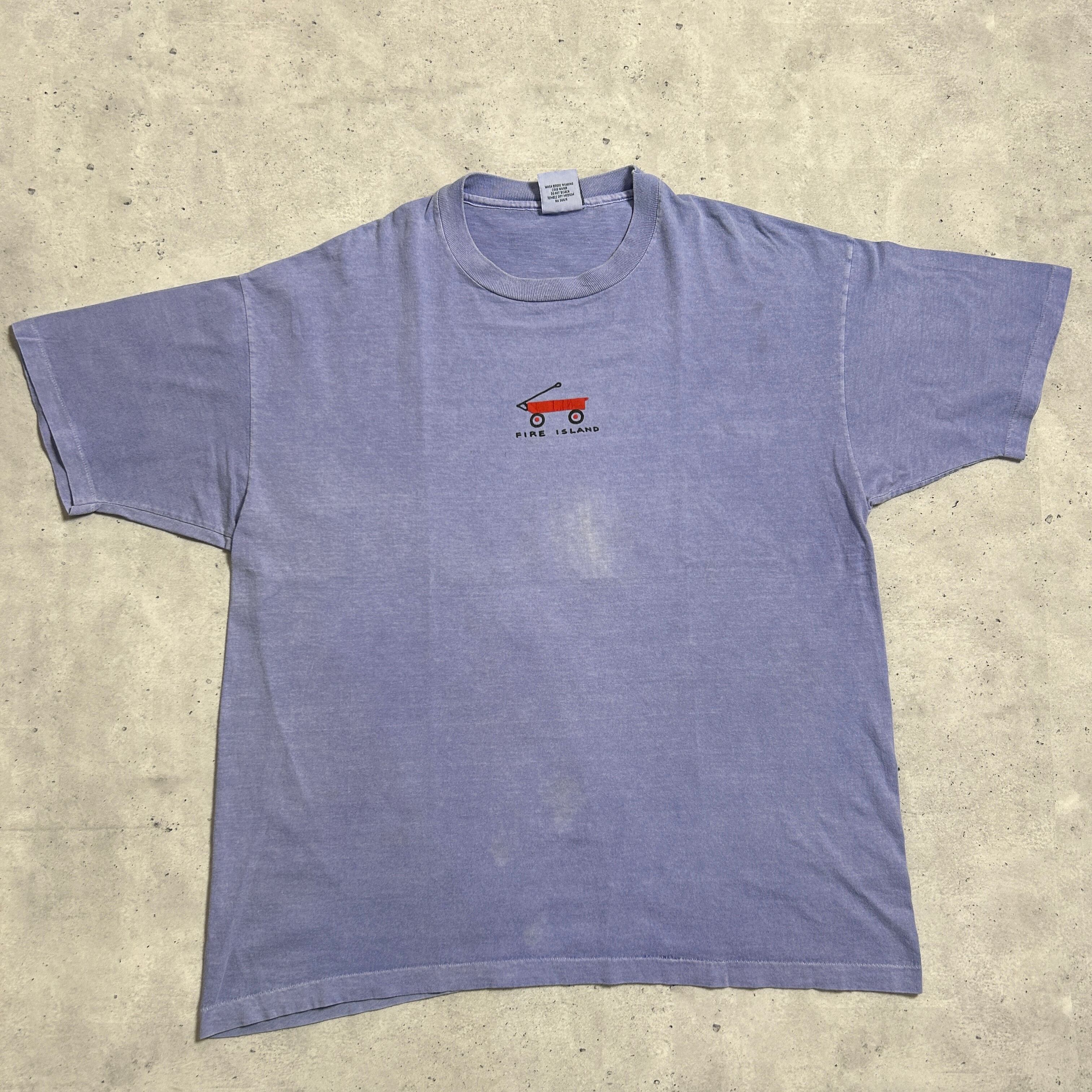 90s USA製 スーベニア ピグメントダイ グラフィック フェード ヴィンテージTシャツ Fire Islad 袖裾シングルステッチ Anvil ビッグサイズ XL