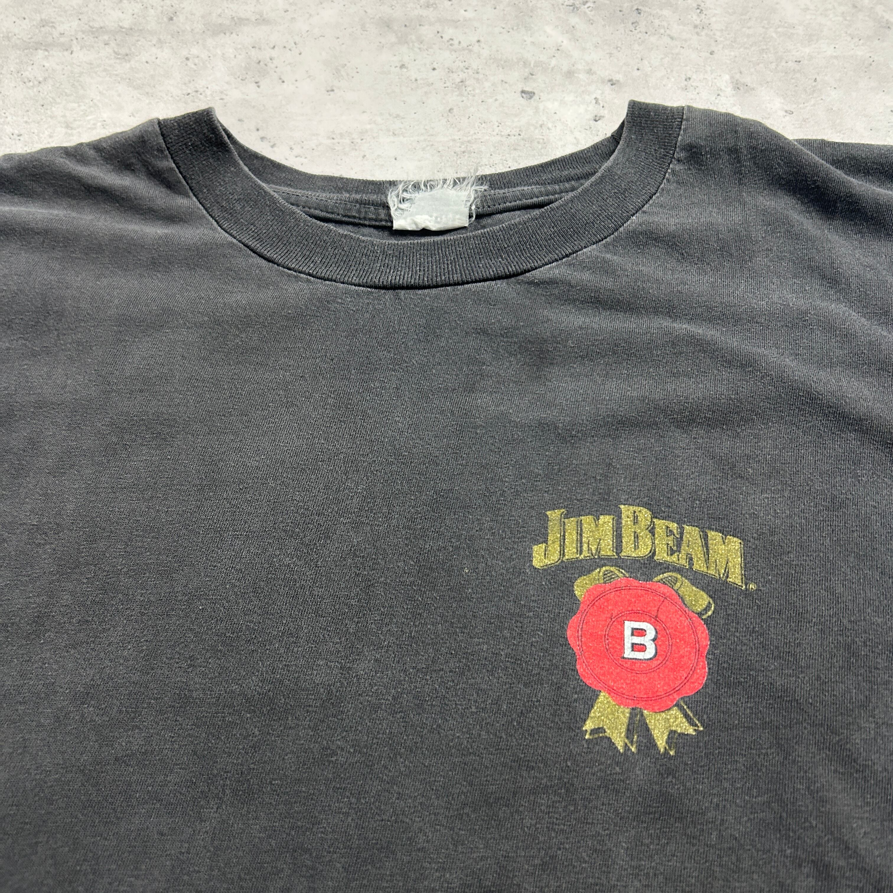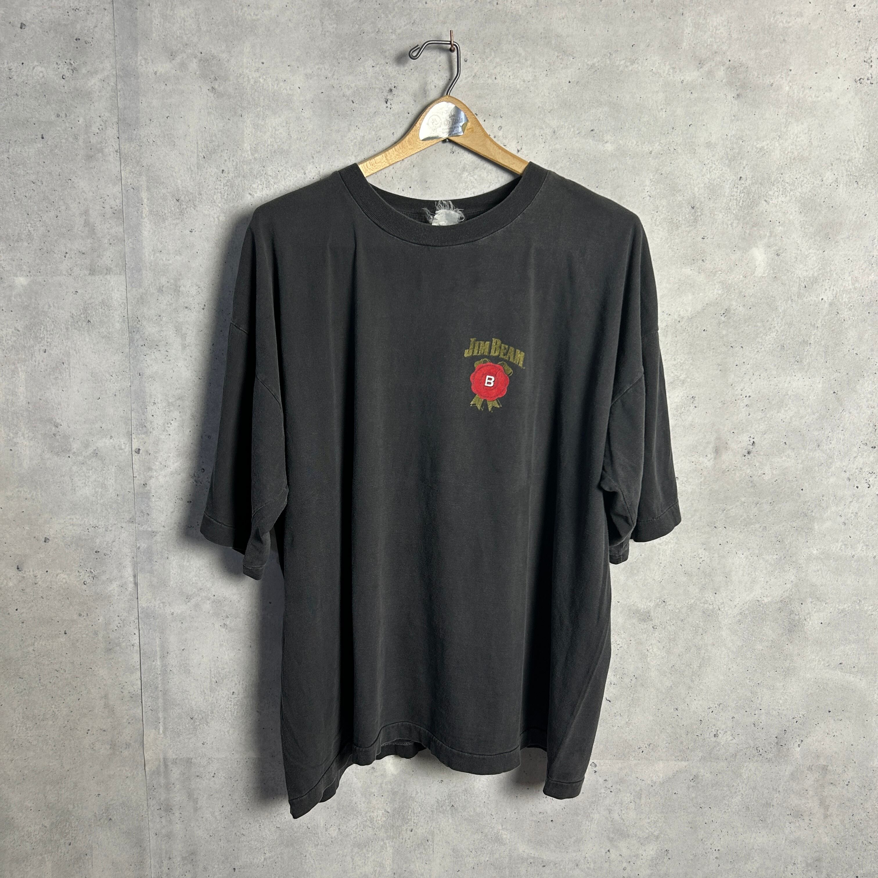 90s~ JIM BEAM ウイスキー 企業 アド物 フェードブラック スミクロ ヴィンテージTシャツ ジムビーム 袖裾シングルステッチ ビッグサイズ XL